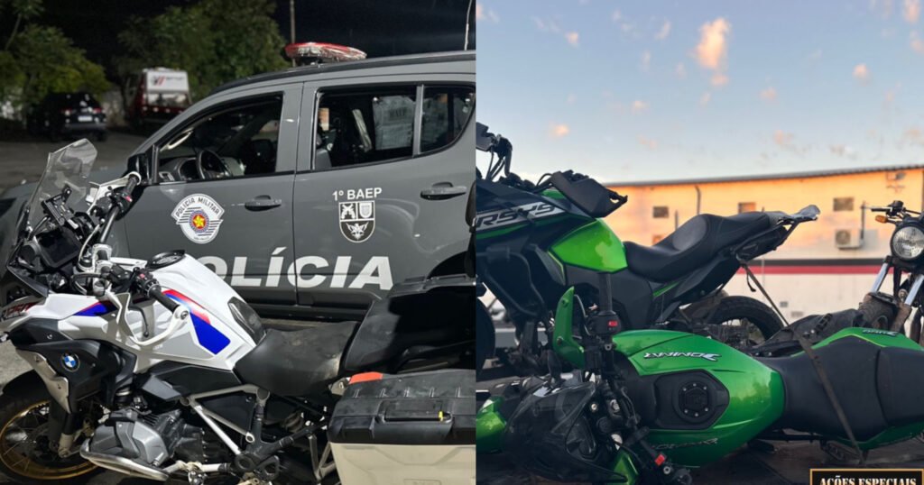 No bairro Jardim Campo Belo, os policiais conseguiram deter dois dos seis criminosos. Além disso, os policiais recuperaram a motocicleta roubada e as motocicletas utilizadas no roubo pela quadrilha: uma Versys, uma Bajaj e uma Dominar, todas roubadas.