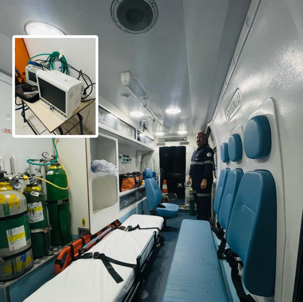 Caso um paciente precise e seja necessário a UTI, as equipes montam a ambulância com; monitor e respirador.
