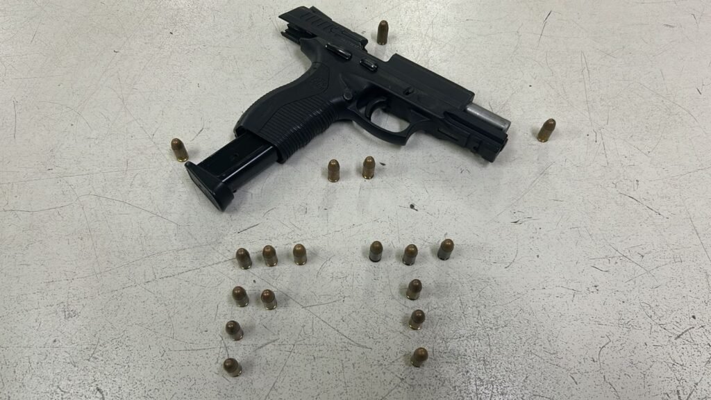 Em revista pessoal, foi localizada uma pistola calibre .380 carregada com um carregador contendo 18 munições.