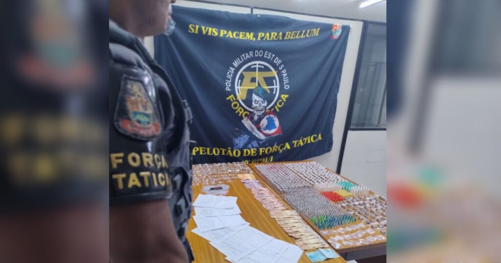 Diante dos fatos, foi dada voz de prisão em flagrante delito pelo crime de tráfico de drog4s, art. 33. O indivíduo e os objetos foram conduzidos até o DP de Várzea Paulista, onde o Delegado de Plantão, Dr. Daniel, ratificou a voz de prisão em flagrante, recolhendo o indivíduo para a carceragem.