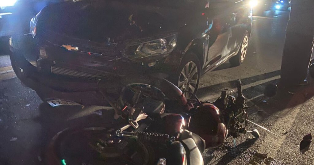 A colisão foi entre um veículo e uma motocicleta. O condutor do moto e o garupa ficaram feridos.