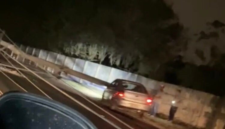 Na noite de ontem (18), um veículo acabou derrubando dois postes de energia elétrica na Marginal do Rio Jundiaí, próximo ao motel Philis, em Várzea Paulista.