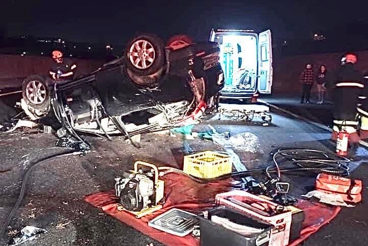 Um Honda CRV capotou na Rodovia Anhanguera, próximo ao trevo de Louveira, na madrugada deste sábado (30). Uma moto que passava no momento do acidente, acabou sendo atingida. Um outro veículo que vinha atrás também bateu na CRV capotada e ainda atropelou o motociclista.