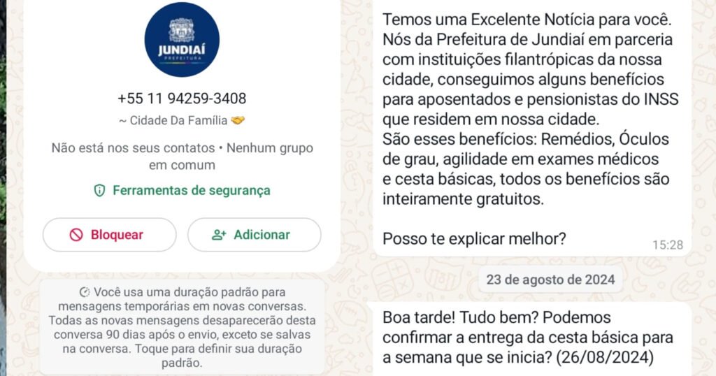 Aos agentes da lei, a vítima relatou que recebeu uma mensagem de um número via WhatsApp, o qual possuía a foto da prefeitura de Jundiaí.