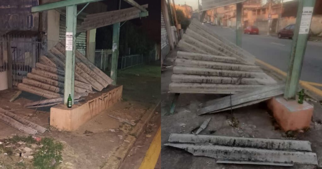 Alguém viu? Ponto de ônibus amanheceu destruído na Vila Popular.