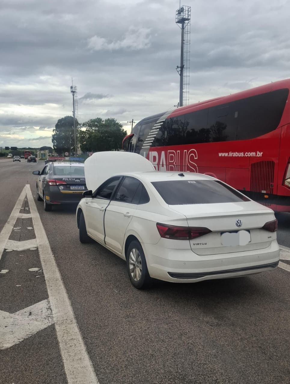 A abordagem ocorreu no km 60,8 da Rodovia SP-075 (pista norte), no trecho administrado pela concessionária Via Appia Colinas. O automóvel, um VW/Virtus, foi identificado pelas equipes após constatação de reiteradas evasões.