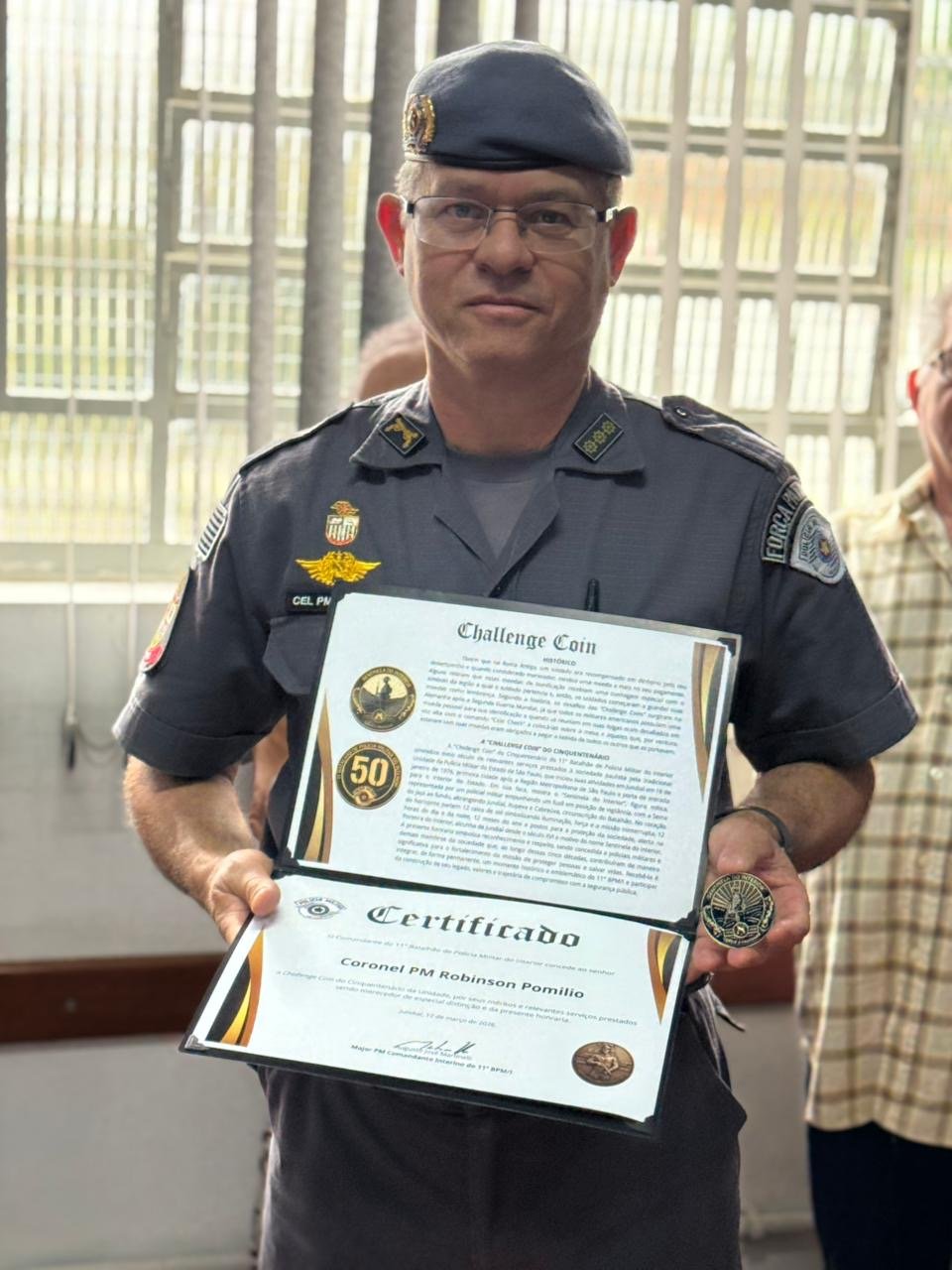 Após 35 anos de dedicação à segurança pública, o coronel da Polícia Militar Robinson Pomilio encerrou seu ciclo no serviço ativo da corporação. A despedida ocorreu na última terça-feira (10), quando o oficial recebeu uma homenagem do 11º Batalhão de Polícia Militar do Interior, em Jundiaí.