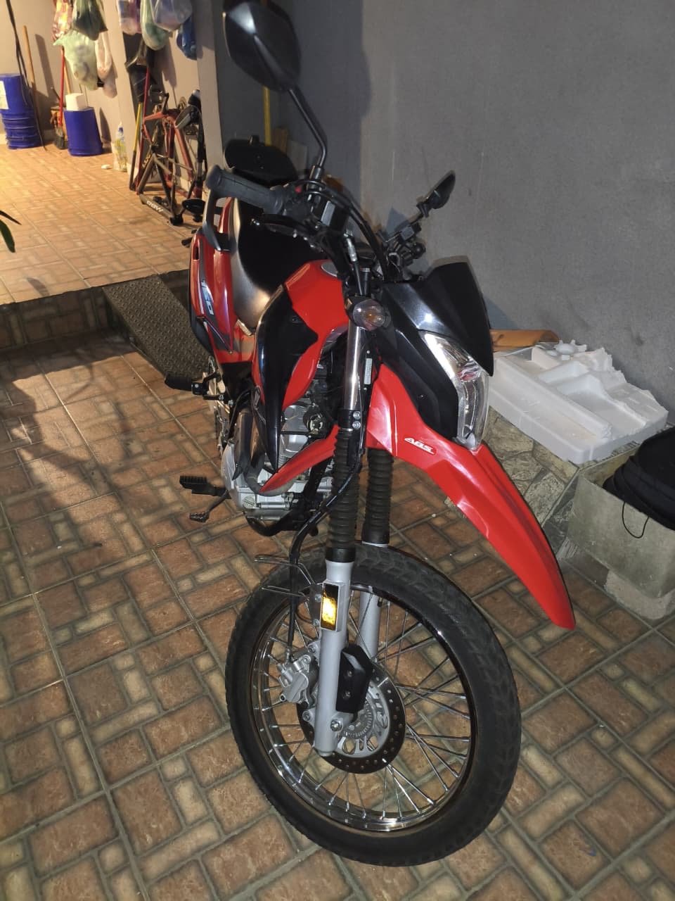 O veículo roubado é uma NK 150 vermelha, placa TLL7F00.