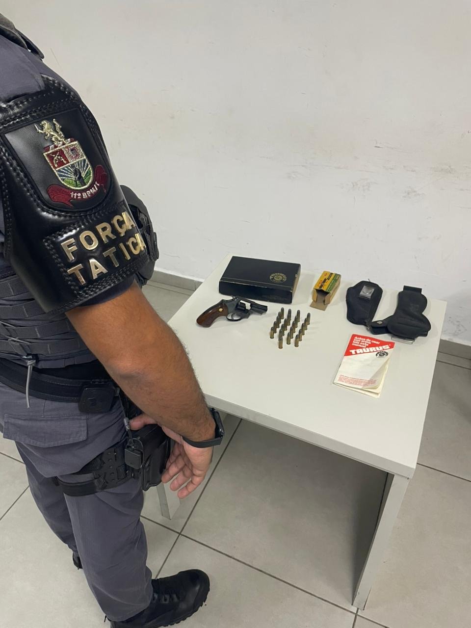 Durante a intensificação do patrulhamento na área central de Jundiaí, uma equipe de Força Tática do 11° BPM /I foi solicitada por um transeunte. Ele relatou que, enquanto organizava a mudança em seu novo imóvel, encontrou um objeto escondido nos fundos de um armário. No entanto, não sabia precisar se o item era uma arma de fogo real ou um simulacro (réplica).