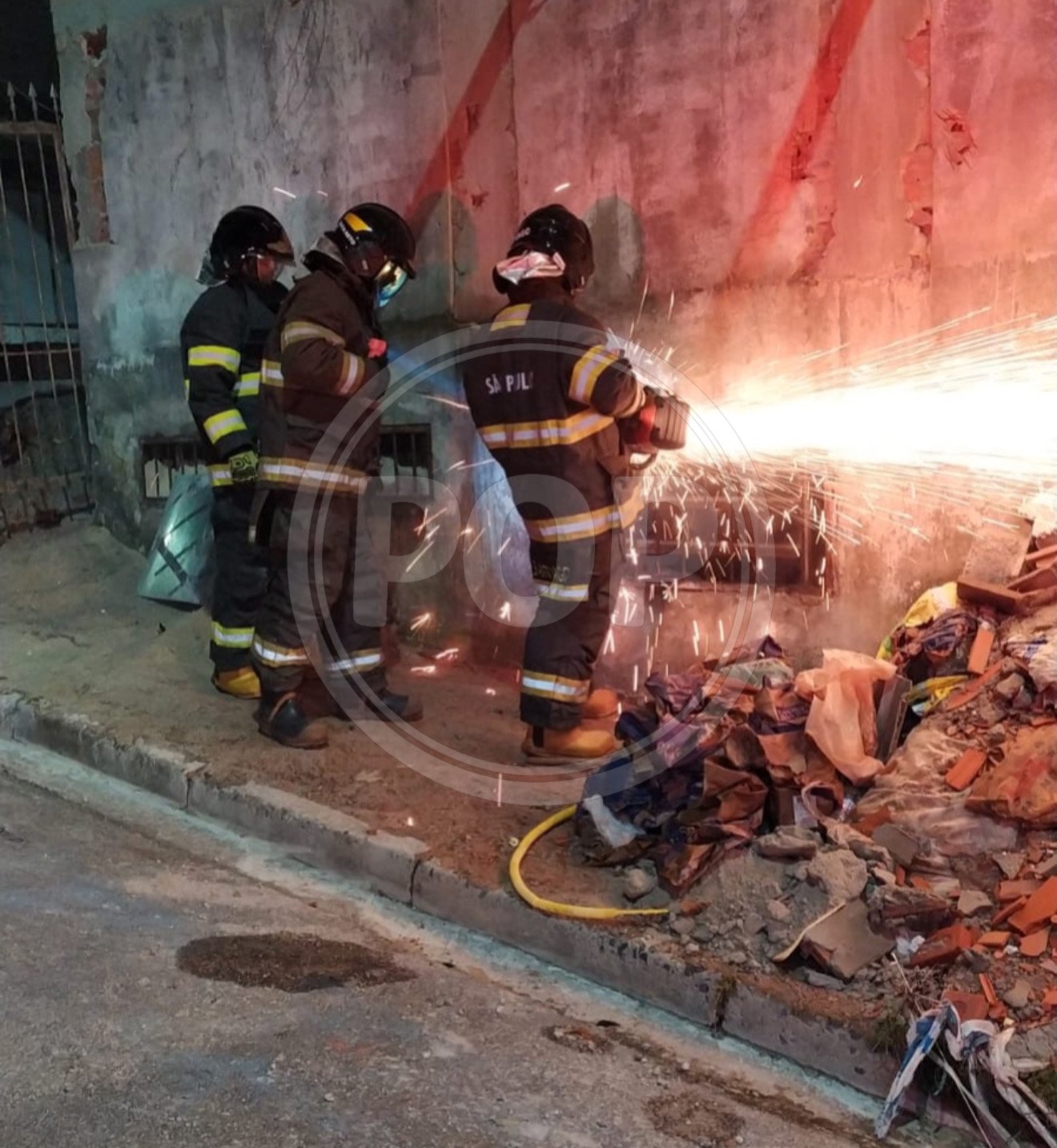 Para conseguir acessar o local, equipes do Corpo de Bombeiros precisaram cortar a grade utilizando equipamento moto abrasivo, já que o imóvel estava completamente fechado no momento da ocorrência.