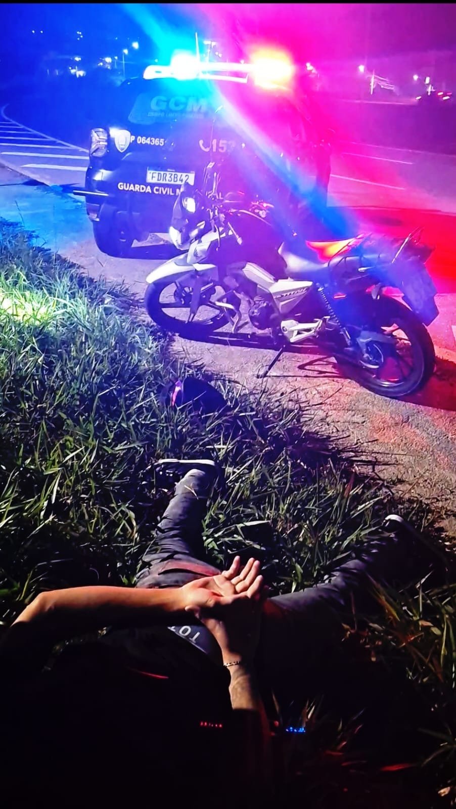 Ao receber ordem de parada, o motociclista desobedeceu e iniciou fuga em alta velocidade, realizando manobras perigosas, ziguezagueando entre veículos e chegando a trafegar pela contramão, colocando em risco outros motoristas. Durante a tentativa de evasão, ele acabou perdendo o controle da moto e caiu.