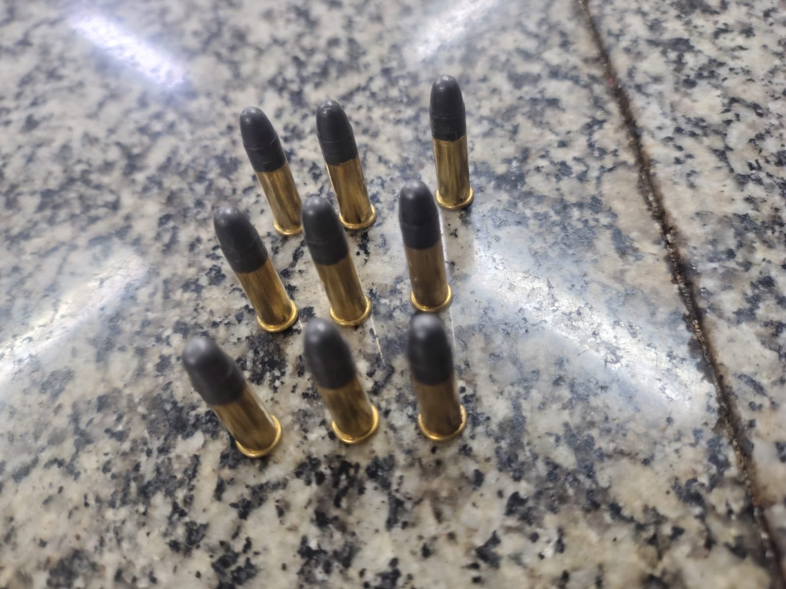 Os policiais foram até a residência do suspeito e, no local indicado por ele, encontraram uma espingarda calibre .22 com nove munições intactas.
