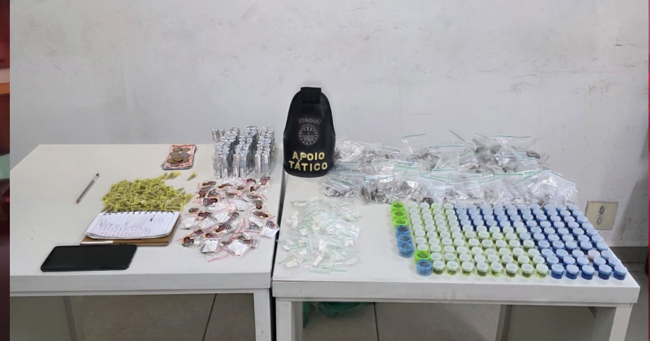 Os agentes conseguiram realizar a abordagem e, durante a revista, encontraram na sacola diversas porções de entorpecentes, além de um caderno com anotações que, segundo a equipe, seriam relacionadas à contabilidade do tráfico.
