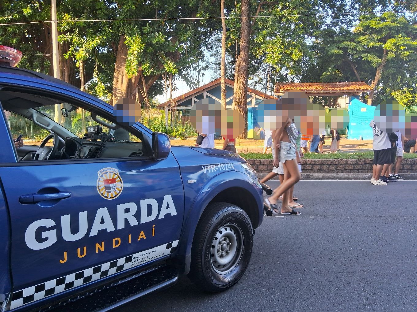 Com auxílio do monitoramento, os guardas identificaram o grupo no momento da dispersão do público, seguindo em direção ao Jardim Fepasa. Ao perceberem a aproximação da viatura, os suspeitos correram, mas um deles foi abordado.
