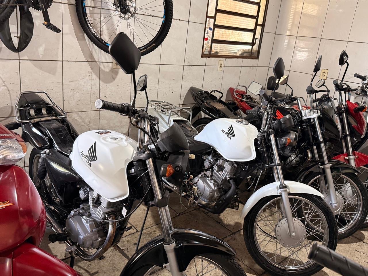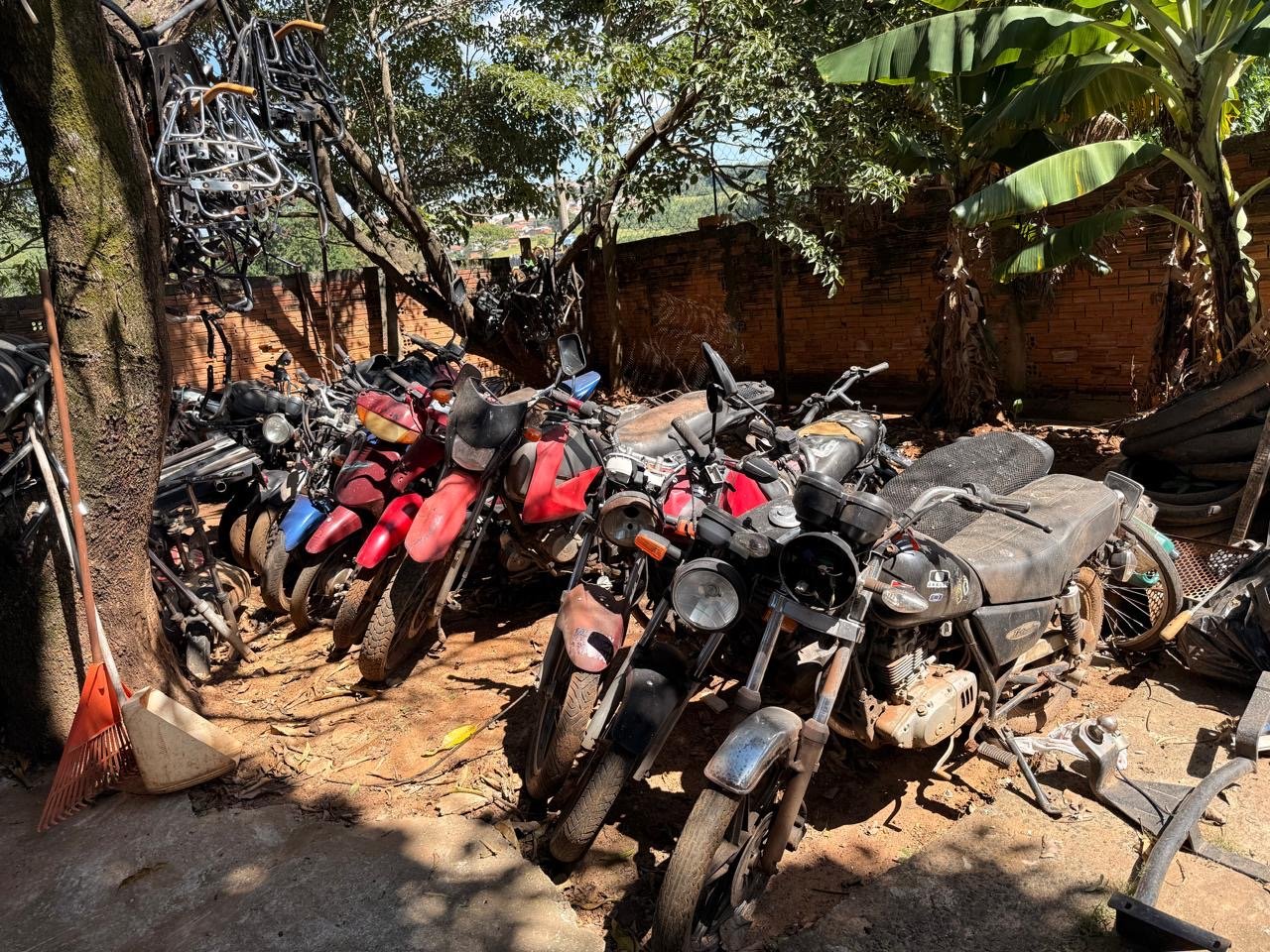 Durante a operação, foram apreendidas 39 motocicletas, em diferentes estágios — desde veículos íntegros até unidades em desmanche ou em processo de recuperação — além de diversas peças sem identificação e sem a etiquetagem obrigatória.