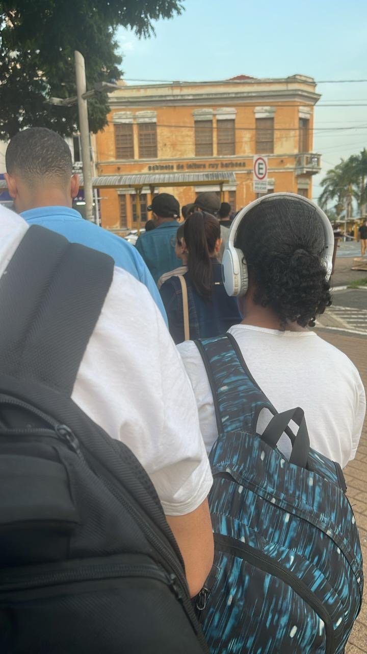 Seguidores enviaram imagens da região central da cidade, onde é possível ver passageiros aguardando por longos períodos para embarcar nas linhas intermunicipais. A situação gerou reclamações, especialmente por ocorrer na véspera do Dia do Trabalhador, data em que a demanda pelo transporte costuma aumentar.