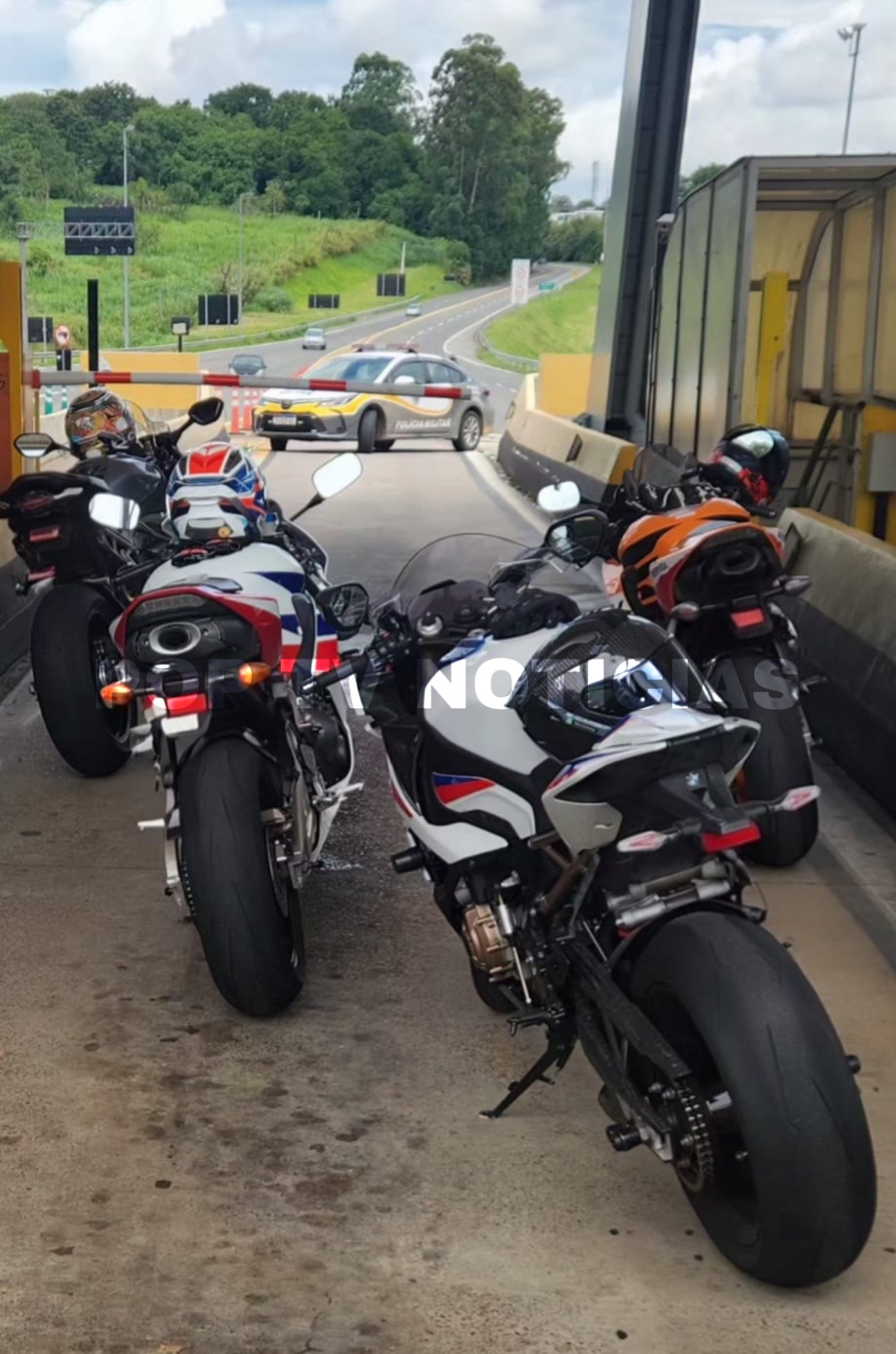 Os motociclistas receberam voz de prisão e foram encaminhados às autoridades competentes. As medidas administrativas cabíveis foram adotadas, e os veículos ficaram sujeitos às providências previstas na legislação de trânsito.