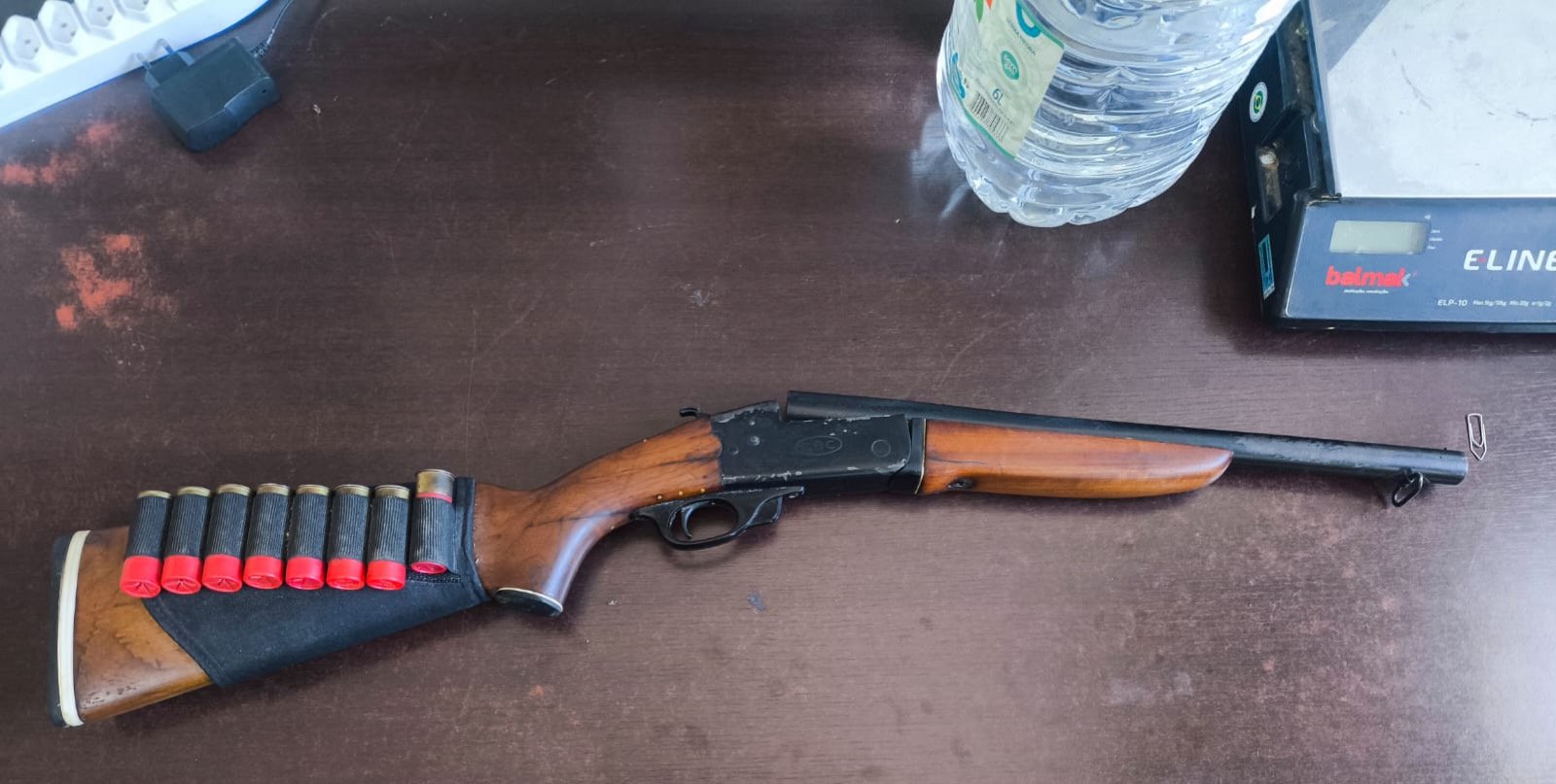 No interior da casa, foi localizada uma espingarda calibre 12, acompanhada de munições. Questionado, o homem afirmou ter adquirido o armamento em outra cidade, porém não possuía documentação ou registro legal.