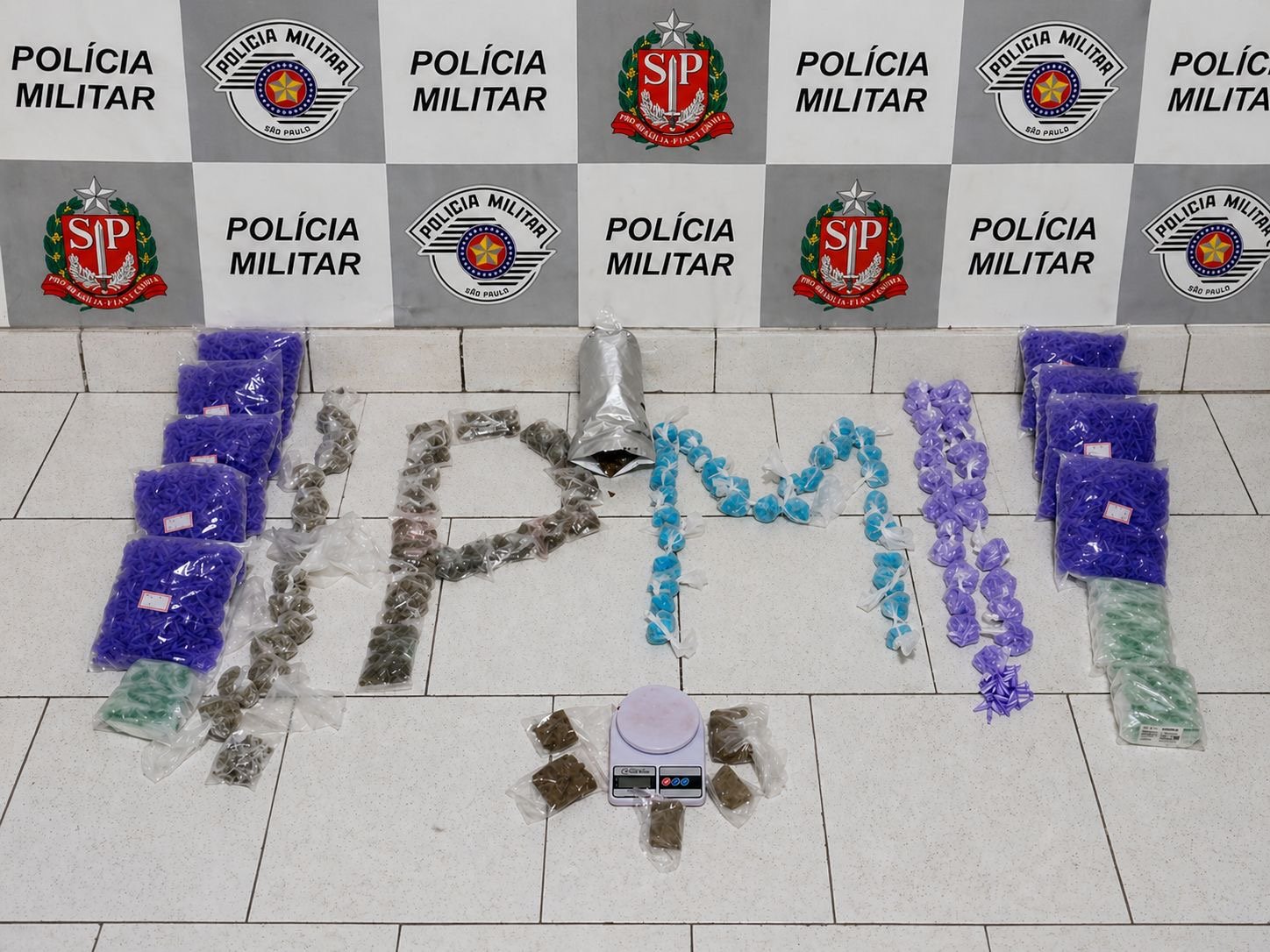 Nas buscas, foram apreendidos mais de 1,2 kg de maconha, centenas de porções de cocaína e diversas unidades de drogas sintéticas, como K2, dry e ice, além de uma balança de precisão e materiais utilizados para embalo e armazenamento.