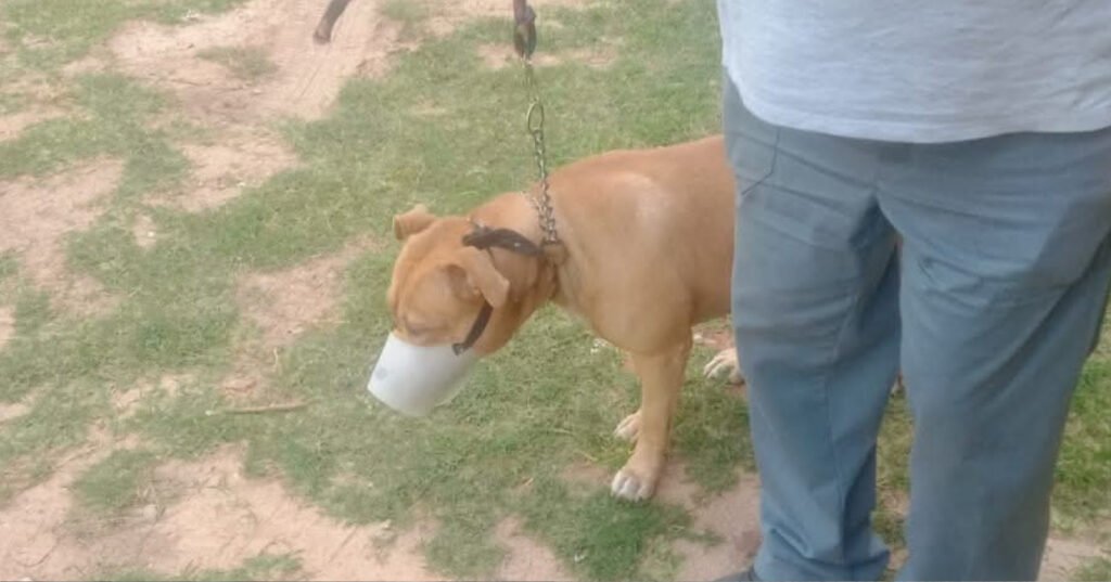 Os agentes resgataram o cão da raça pitbull que havia atacado duas pessoas, dentre elas uma criança.
