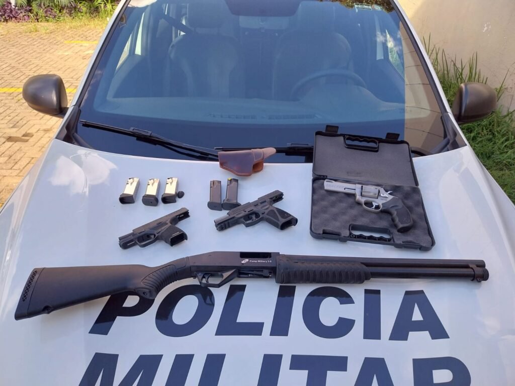Ao todo, foram apreendidos um revólver calibre .357, duas pistolas calibre 9mm com carregadores, uma espingarda calibre 12 e munições. As armas estavam desmuniciadas no momento da apreensão.
