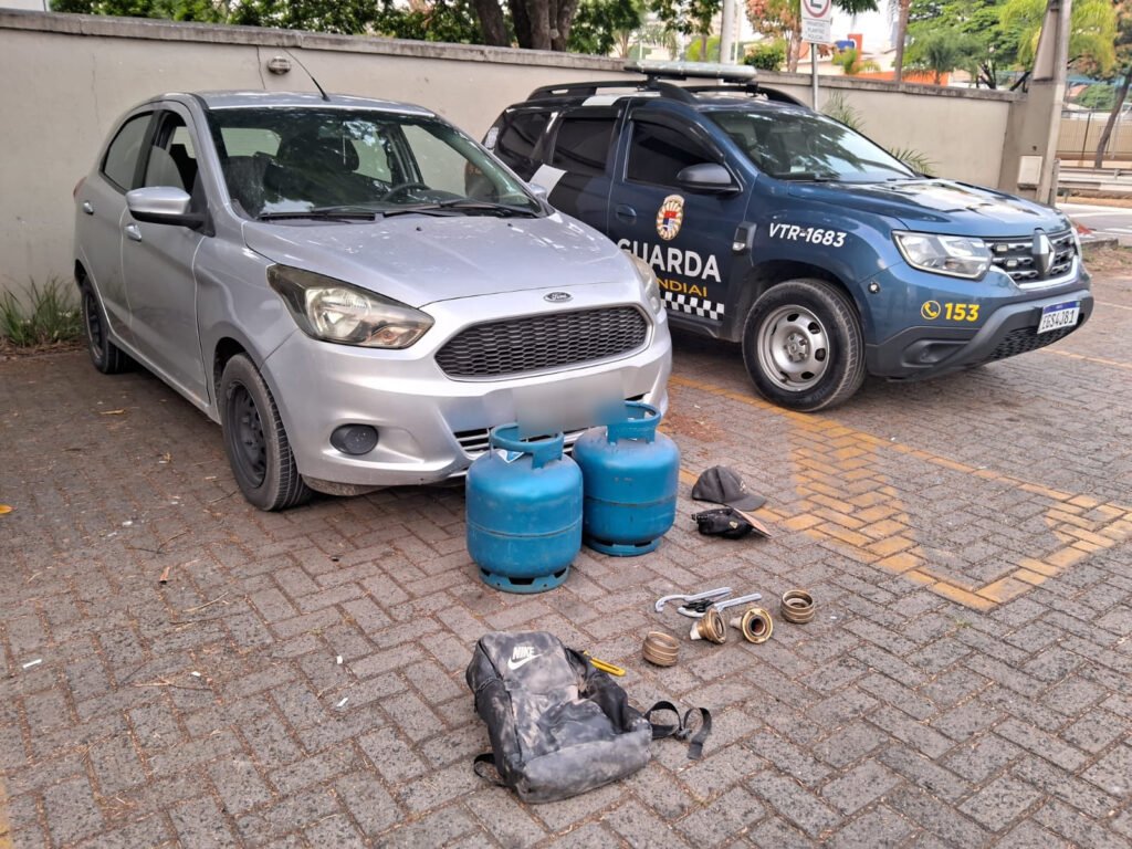 Os guardas municipais decidiram abordar o veículo. Durante a revista veicular, foram localizadas peças de hidrante e botijões de gás, cuja procedência não foi informada.