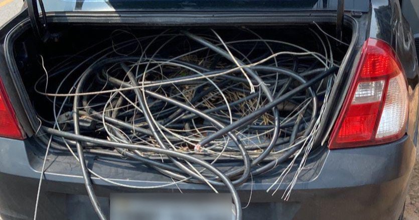 No porta-malas do automóvel, foram encontrados mais de 100 metros de fios de cobre, além de um alicate corta-frio, um alicate, uma lima e um machado. A perícia compareceu ao local e verificou que os fios eram de postes de energia de uma avenida próxima ao local da abordagem. Os criminosos foram encaminhados à Delegacia do Município e permaneceram à disposição da Justiça.