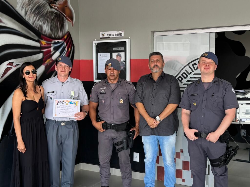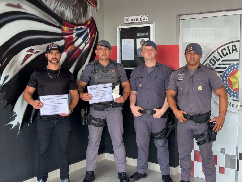 O SD Elias foi homenageado como o policial do mês de janeiro, enquanto seu parceiro, SD Rodrigo Almeida, foi homenageado como policial destaque.