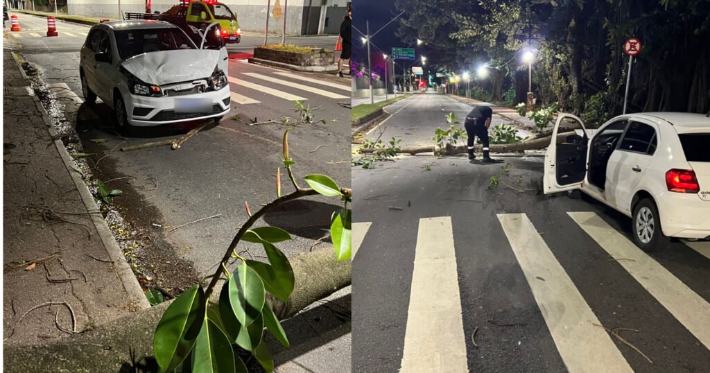 Na Avenida dos Ferroviários, uma árvore caiu próximo ao Poupatempo. Um veículo que seguia no sentido Centro conseguiu frear a tempo, mas acabou colidindo contra a árvore. Felizmente, não houve vítimas.