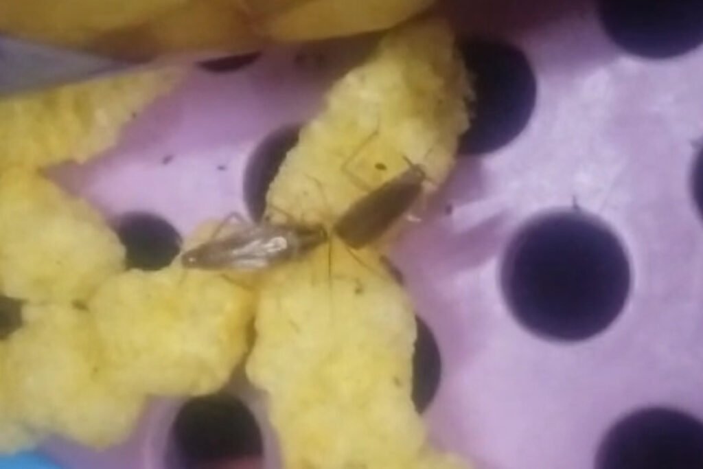 Ele chegou a gravar um vídeo, no qual é possível notar que um inseto come tranquilamente um salgadinho.