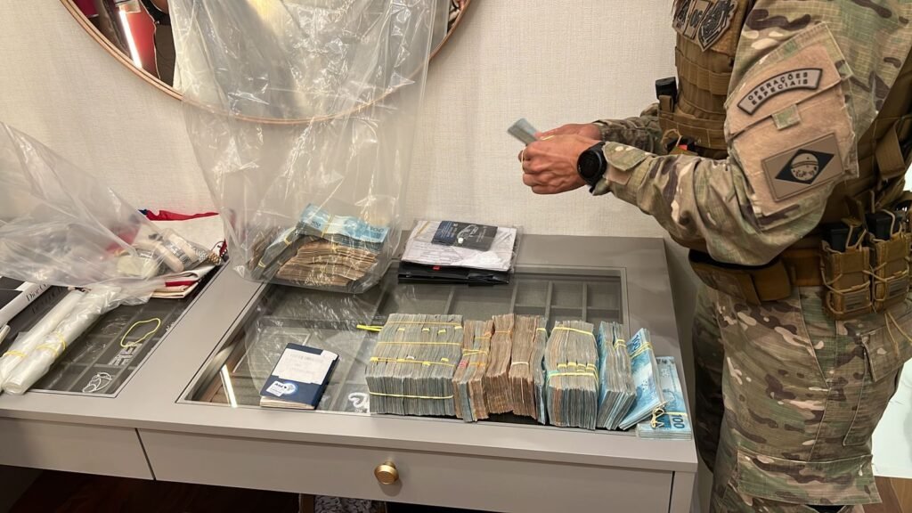 O avião, prefixo PR-TEN, foi recolhido por policiais enquanto passava por uma manutenção no aeroporto de Jundiaí (SP). Conforme a Polícia Civil, a ação mira uma organização criminosa que movimentou R$ 3 bilhões provenientes de jogos ilegais.