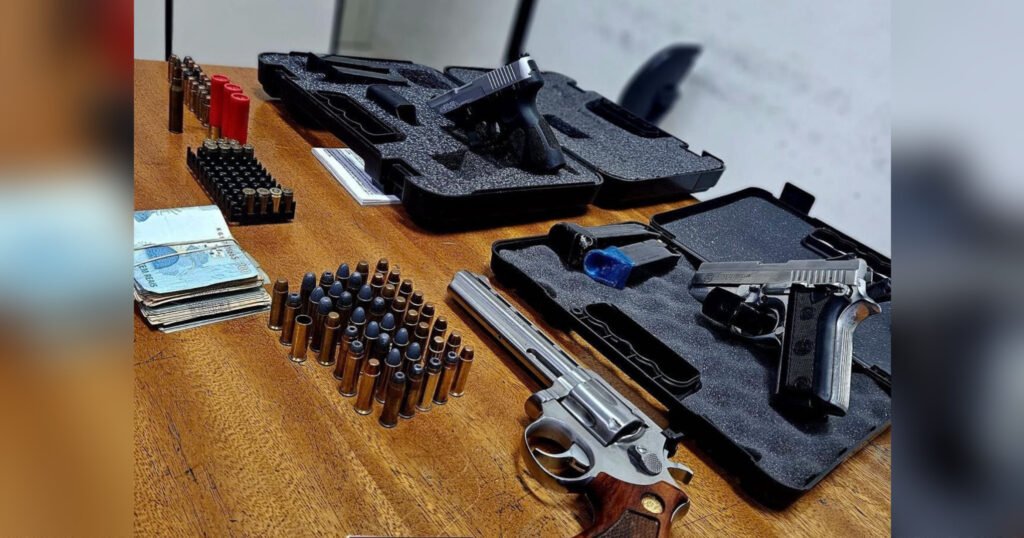 Um Revólver TAURUS, calibre 38, numeração suprimida, com 42 munições intactas e uma munição deflagrada.