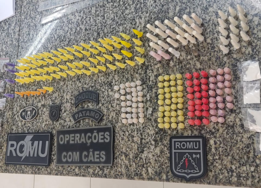 Durante o patrulhamento na região, a equipe decidiu adentrar a mata para realizar um treinamento com o cão K-9 Fox, quando, em determinado local, o animal indicou a presença de uma sacola. No interior do objeto, foram encontrados diversos entorpecentes. Ao todo, foram apreendidos 54 porções de maconha, 115 microtubos de crack e 121 microtubos de cocaína.