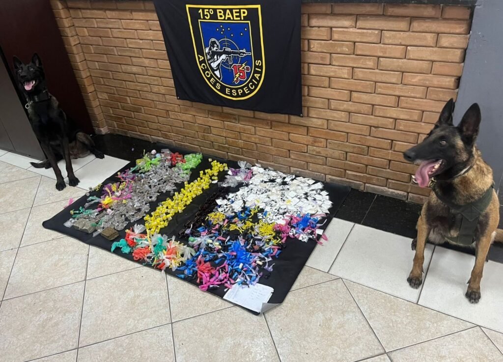 Bem treinados, cães do Canil do 15º BAEP apreendem grande quantidade de entorpecentes.