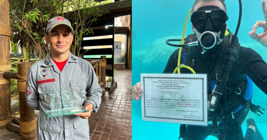 O Soldado Leandro Cavalcante, do Corpo de Bombeiros de Várzea Paulista, foi destaque no curso de mergulhador autônomo, um dos cursos mais difíceis do Corpo de Bombeiros.