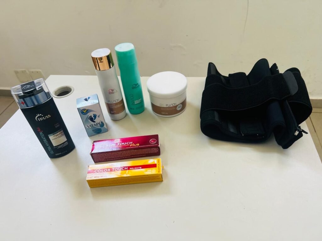 A equipe, em posse das características da mulher e do seu veículo, conseguiu lograr êxito em abordá-la. Com ela, foi localizada uma cinta modeladora, shampoos e cremes de alto valor.