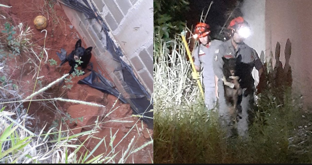 No início da noite desta terça-feira (17) Homens do Corpo de Bombeiros de Várzea Paulista, resgataram um cachorro.