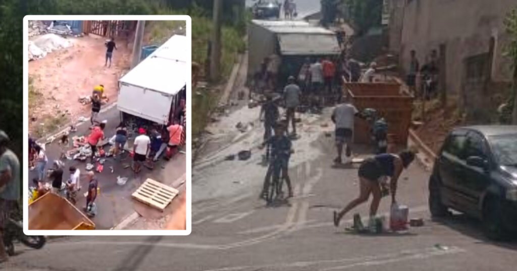 Populares levaram a carga de bebidas embora.