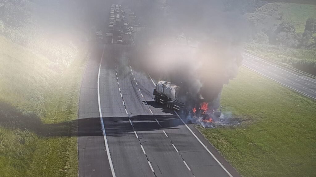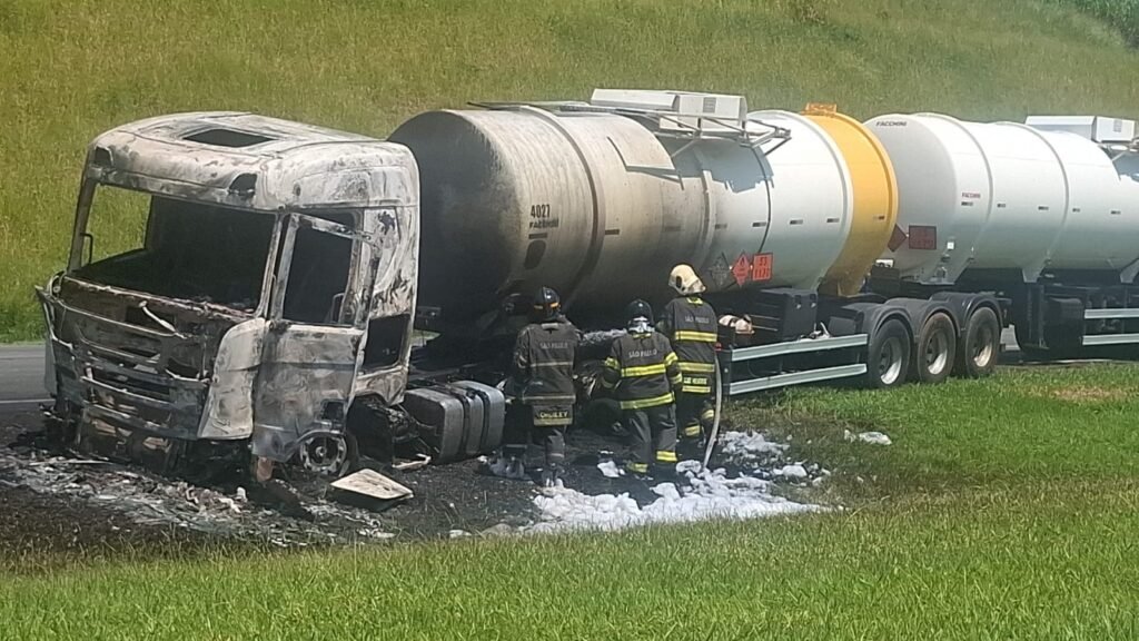 Na manhã desta quinta-feira (27), um caminhão-tanque carregado com 60 mil litros de etano pegou fogo na Rodovia dos Bandeirantes, altura do Km 74, no sentido interior, em Itupeva.