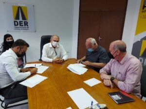 O prefeito de Campo Limpo Paulista, Dr. Luiz Braz esteve, nesta quarta-feira, 03, no Departamento de Estradas de Rodagem (DER) e foi recebido pelo superintendente do órgão, Edson Caram e pelo Deputado Estadual Alexandre Pereira. A pauta do encontro foi a assinatura do convênio entre Prefeitura e DER para o início da recuperação da Marginal, que já tem previsão para começar na segunda quinzena deste mês, integrando o Programa Novas Estradas Vicinais, do Governo do Estado.