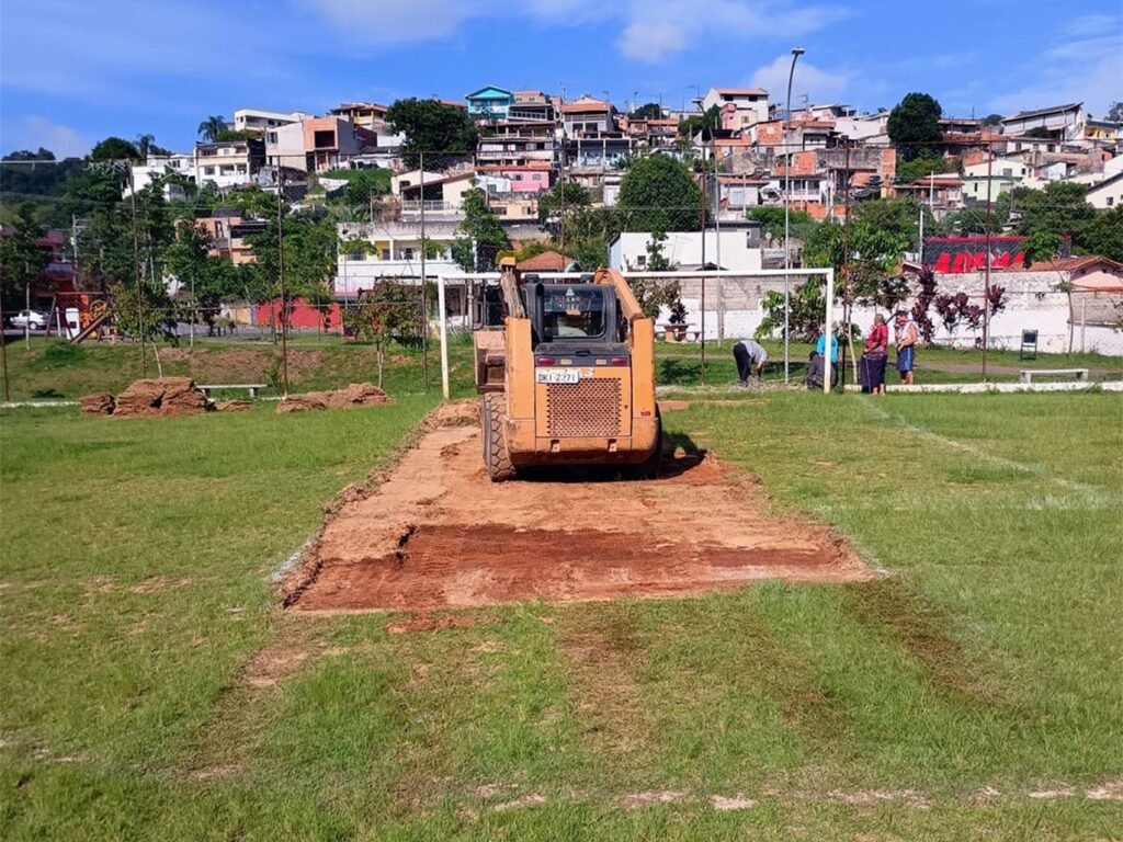 “A equipe de manutenção do Esporte e a equipe da Infraestrutura estão atuando nesses locais. As duas unidades estão juntas, fazendo a manutenção dos campos para o início do Campeonato Amador de Futebol”, explica o gestor municipal de Esporte, Lazer, Cultura e Turismo, Júlio Pardal.
