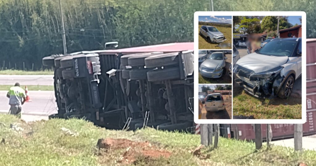 Na tarde desta quinta-feira (07), uma carreta acabou batendo em seis veículos nas margens da Rodovia Dom Gabriel, próximo ao “frutas Rondon”, em Jundiaí.