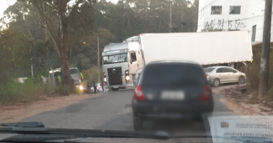 Na manhã desta quarta-feira (28), uma carreta acabou quebrando e travando o trânsito na Avenida das Lélias, região do Jardim Bahia, em Várzea Paulista.