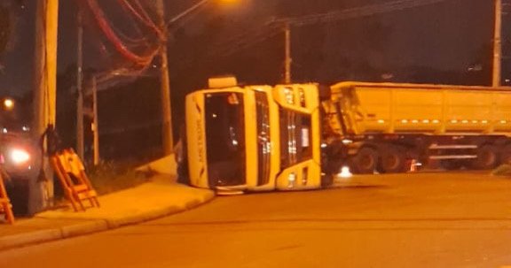 Na manhã desta sexta-feira (08), uma carreta acabou tombando na rotativo s Avenida Piva Barranqueiros, na região do Distrito Industrial de Jundiaí.