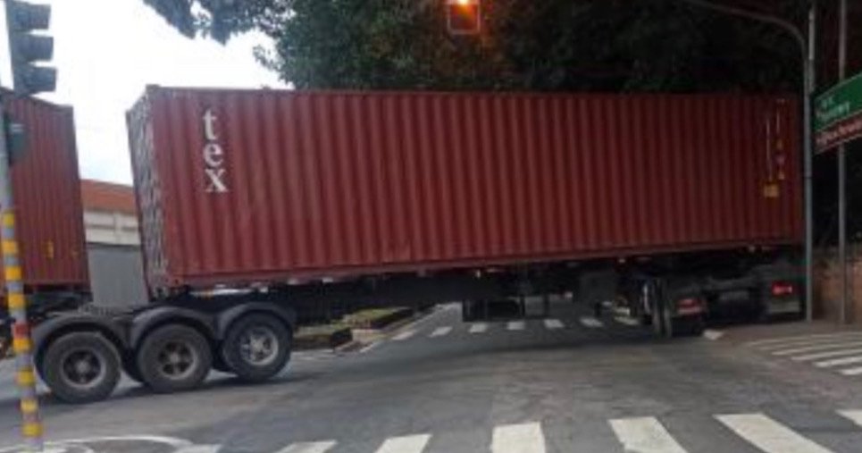 Na manhã deste sábado (29), uma carreta ficou travada na Avenida dos Ferroviários, em Jundiaí.