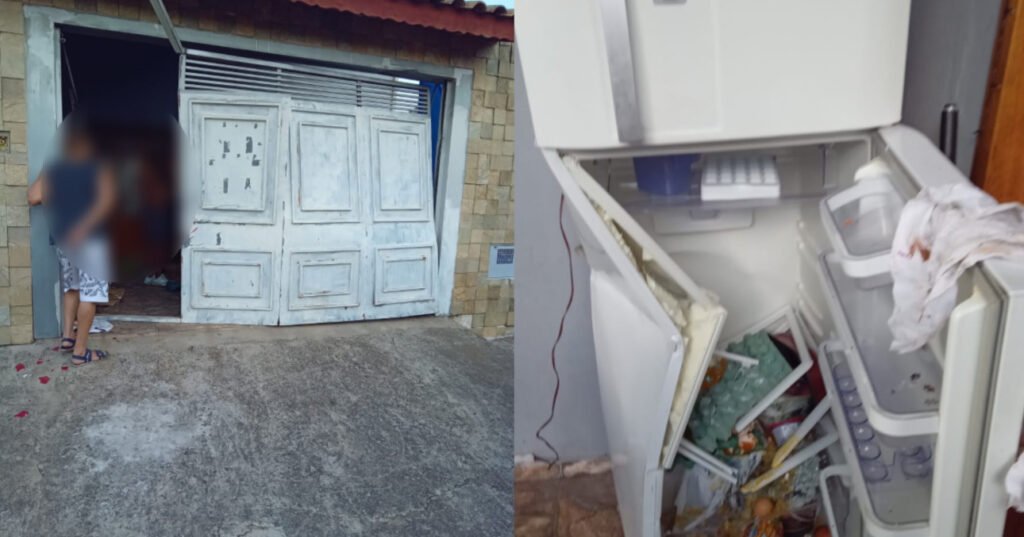 O veículo derrubou o portão do imóvel e atingiu a geladeira da família; felizmente, ninguém ficou ferido.