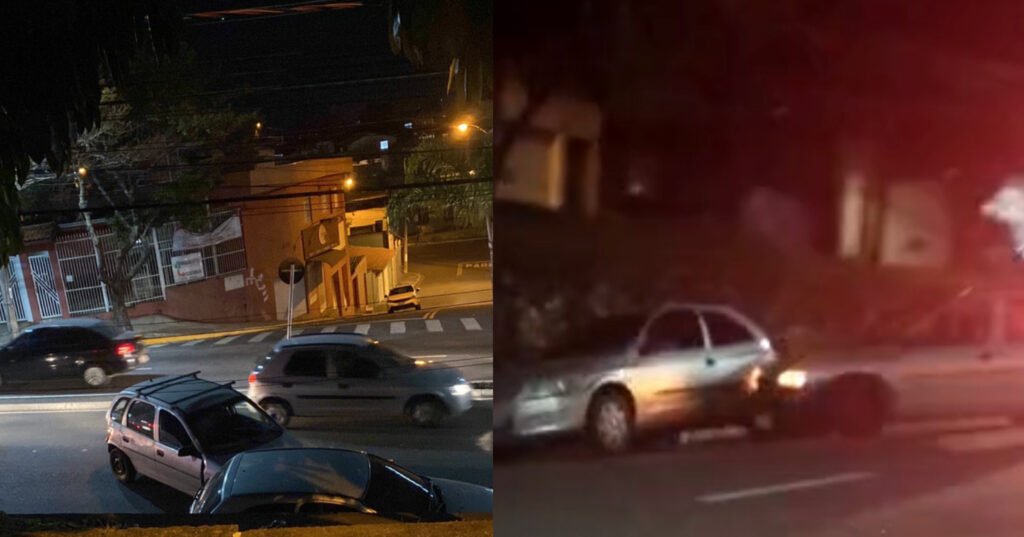 Na noite deste domingo (02), um carro bateu em um veículo que estava estacionado próximo a lojas cem, em Várzea Paulista.