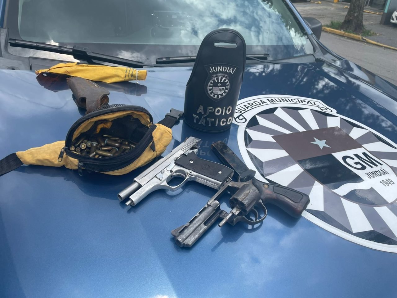 No veículo que eles estavam foram encontrados diversas munições de vários calibres e duas armas, uma ponto 45 e um revólver calibre 38.