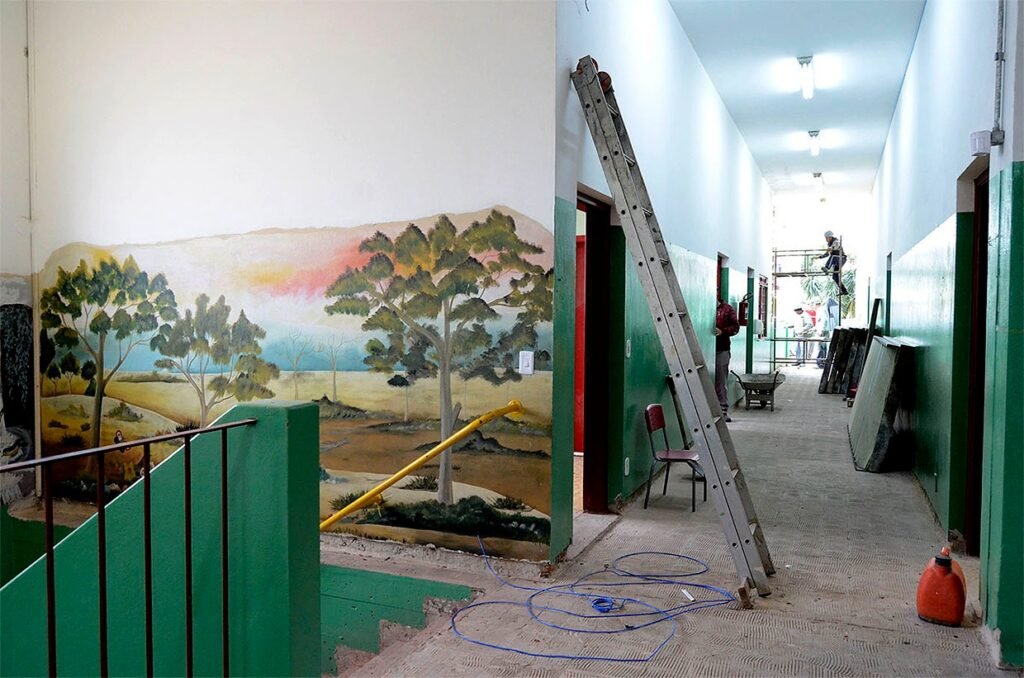 A reforma completa inclui troca do piso, rede elétrica, luminárias, hidráulica, pintura, reforma dos banheiros, portas e ampliação de salas. A obra também inclui a remoção dos quebra-ventos estruturais, por alvenaria, e a instalação de um elevador, uma grande demanda da unidade escolar.