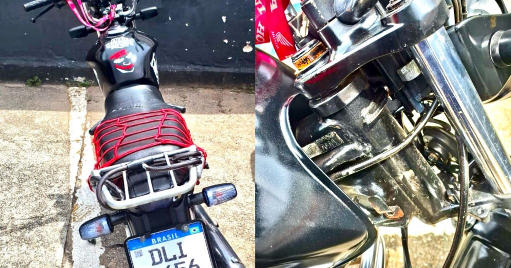As informações foram transmitidas na rede de rádio da GCM e a equipe ROMO (GCM Max e Sobrinho e a GCMF Araújo) conseguiu realizará a abordagem, constatando que a moto era proveniente de leilão, estava com o chassi suprimido, placa artesanal e seu condutor não possuía Carteira de Habilitação.